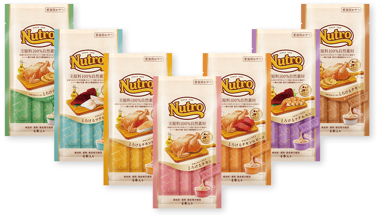 お肉やお魚など、素材のおいしさがお口いっぱいに広がるクリーミータイプのおやつ